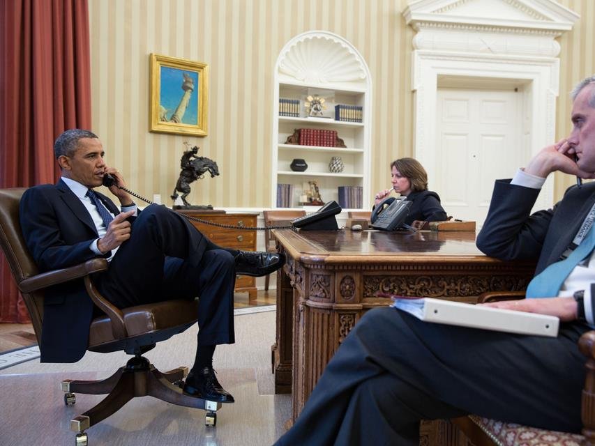 Обаму в поездке сопровождает его семья, а также госсекретарь США Джон Керри.