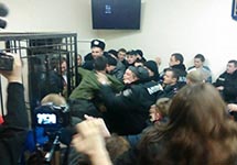 После объявления решения суда в зале произошла небольшая потасовка. Сторонники Краснова перегородили выезд из здания суда.
