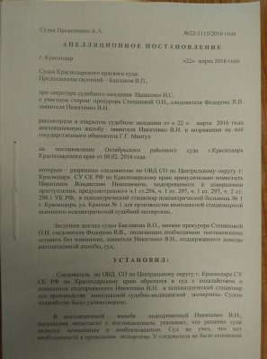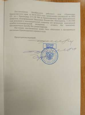 Правозащитника Владислава Никитенко, который должен был 23 марта выступать защитником Дарьи Полюдовой на заседании по апелляционной жалобе на ее приговор, отправлен в психиатрическую больницу. Об этом Никитенко сообщает в Facebook. Такое решение принял Краснодарский краевой суд, который, рассмотрев апелляцию на соответствующее постановление Октябрьского районного суда Краснодара от 8 февраля, оставил его без изменений. Суд постановил отправить Никитенко на психиатрическую экспертизу в рамках дела, по которому он подозревается в воспрепятствовании осуществлению правосудия (ч. 1 ст. 294 УК), неуважении к суду (ч. 1 ст. 297 УК) и клевете на прокурора (ч. 2 ст. 298.1 УК).