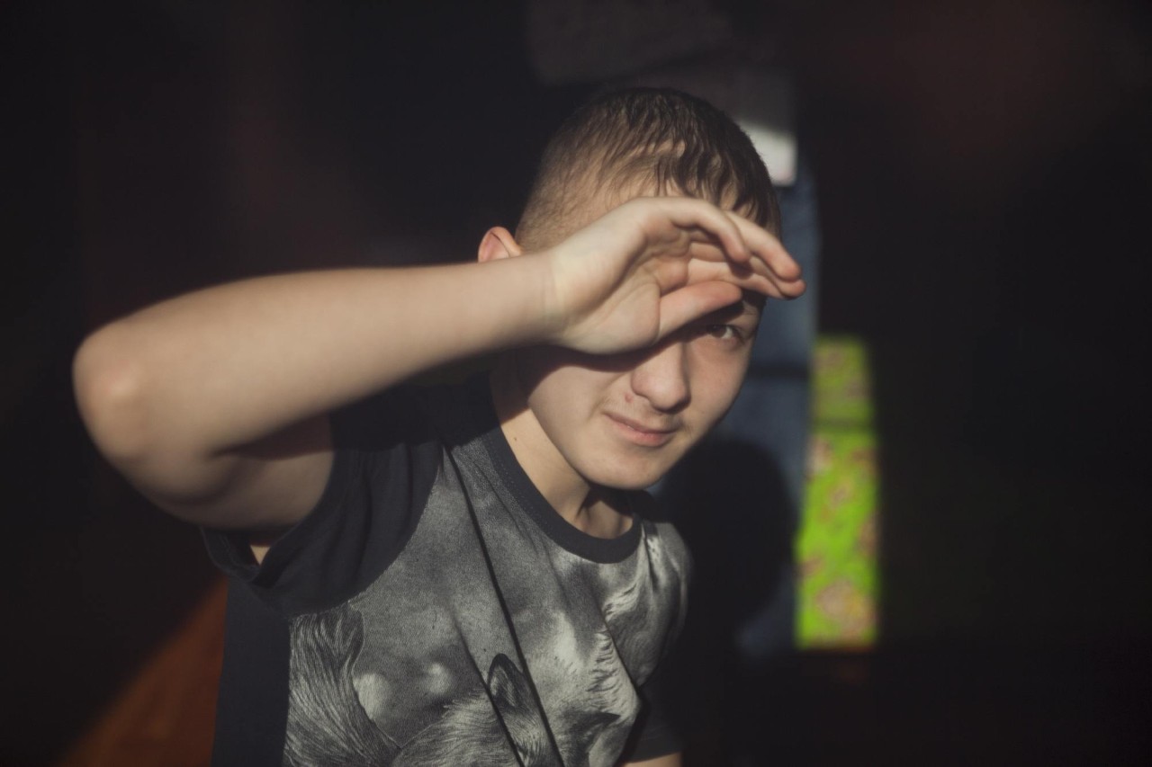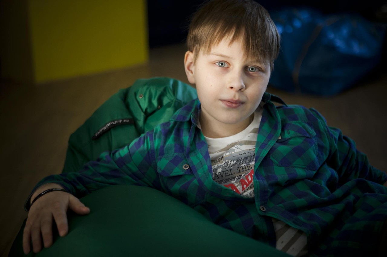 Женя весь вечер молча рисовал фломастерами покосившиеся дома и кривых человечков, а потом залез на шведскую стенку. Он выглядит на восемь, но ему 14. У него была серьезная опухоль мозга, — отсюда задержка в физическом и ментальном развитии.