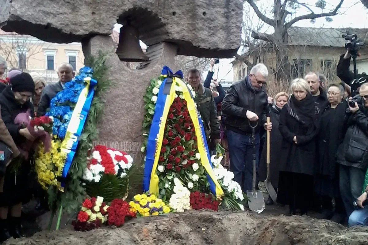 Перед отпеванием — литургия. Проповедь дает ответ на вопрос, который я не осмелилась задать Мирославе. Георгия Гонгадзе хоронят в день Сорока мучеников, один из самых чтимых в православии. Хоронят не на мемориальном Байковом кладбище, куда, кажется, власть предержащие записываются в льготную очередь еще при жизни. Рядом с церковью после получения Украиной независимости поставили каменный крест в память о новомучениках — растрелянных в застенках ЧК, замордованных в лагерях, уничтоженных Голодомором. В 1993-м Гия приходил с цветами и поминальной свечой на открытие этого памятника. Теперь у подножия креста появится его, Гонгадзе, не символическая могила.