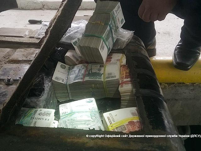 Пограничники обратили внимание на нехарактерный звук во время простукивания топливного бака. В результате в нем были найдены деньги, тщательно упакованные в целлофановые пакеты. По словам правонарушителя, там находилось около 500 миллионов рублей.