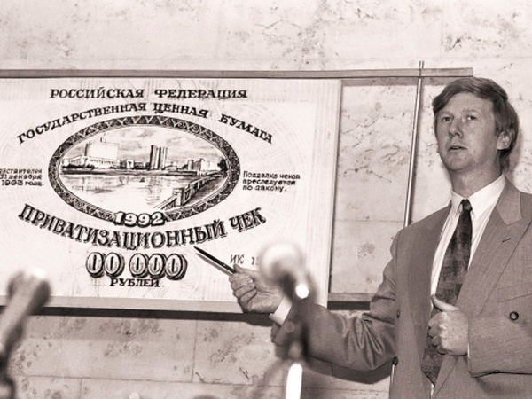 Презентация приватизационного чека Анатолием Чубайсом. wikipedia.org «Срок давности, если говорить о российском законодательстве, формально вышел, очевидно, что Россия сейчас хочет задействовать доктрину, которая называется «Доктриной нечистых рук», согласно которой имущество, полученное незаконным путем, не подлежит защите. Но, выдвигая такой аргумент, Россия поднимает целый пласт еле зажившей раны приватизации, сразу возникает вопрос – если имущество было приватизировано незаконным путем, почему эти сделки не были оспорены?», - спрашивает Давлетбаев.