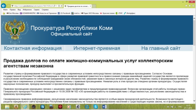 Более двух лет назад, 20.03.2014, на официальном сайте Прокуратуры РК было размещено предупреждение о появлении на российских просторах нового способа незаконного взыскания задолженности за услуги ЖКХ — продажа долгов управляющими компаниями третьим лицам —коллекторам.