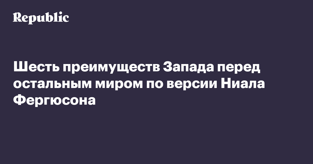 Шесть преимуществ Запада перед остальным миром по версии Ниала Фергюсона