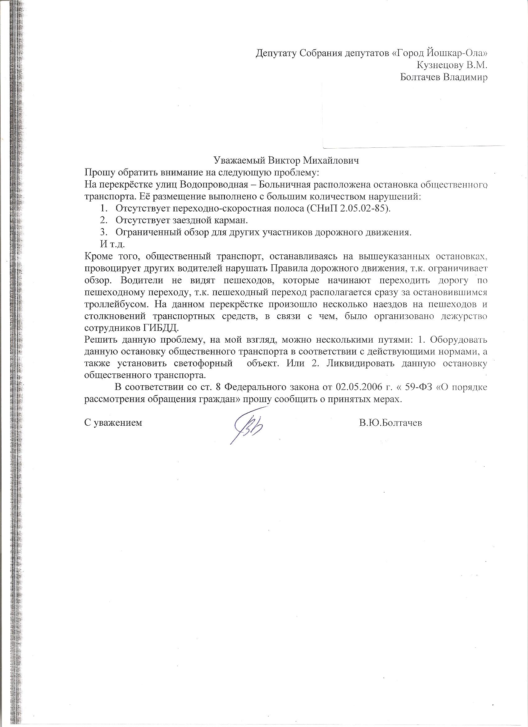 Проблема существует, о чём было отправлено письмо 3 декабря 2015 года через службу сервиса сайта Собрания депутатов депутату от «Единой России» Кузнецову В.М., т.к. это его округ, в надежде, что хоть что-то изменится. Но ответа до сих пор нет. Может быть ответ отправили опять не по моему адресу. В прошлый раз публикация на данном сайте, нашла потерявшееся письмо. http://7x7-journal.ru/post/77834