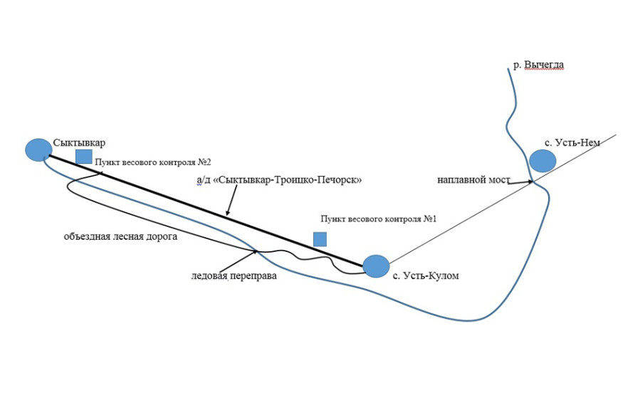 В феврале 2016 года был поврежден наплавной мост через реку Вычегда около села Усть-Нем в Усть-Куломском райне Коми. В Министерстве строительства, жилищно-коммунального и дорожного хозяйства региона полагают, что это произошло из-за того, что по нему ездили лесовозы, вес которых значительно превышал нормативные показатели. Они же виноваты в том, что трасса Сыктывкар — Троицко-Печорск (в том числе участок дороги в Усть-Куломском районе) пришла в негодное состояние.