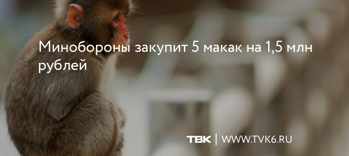 Минобороны закупит 5 макак на 1,5 млн рублей