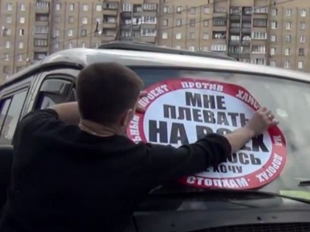 После того, как спортсмен этого не сделал, активисты наклеили на стекло автомобиля наклейку «Мне плевать на всех – я паркуюсь, где хочу».