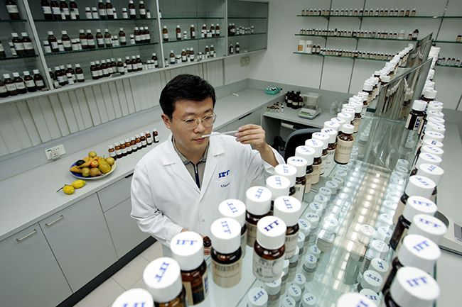Флавористы, с которыми мне удалось поговорить, — приятная многонациональная компания людей с хорошим чувством юмора. Однако они осторожны в отношении правил своей профессии. Это ученые, которые способны не только насладиться хорошим вином, но и рассказать вам, какие химические вещества придают ему уникальные свойства и ароматы. Один флаворист сравнил свою работу с искусством композитора. Хорошо сделанная ароматическая смесь дает «верхнюю ноту», за которой следует «конечная нота» и «выравнивание». И за каждый этап отвечает отдельное вещество. При малейших нарушениях пропорций вкус пищи может радикально измениться. Как сказал один флаворист: «Маленький аромат играет огромную роль».