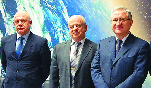 Начальник департамента Александр Виданов (крайний слева) и первый заместитель секретаря Совбеза Юрий Аверьянов (крайний справа) на совещании по космосу