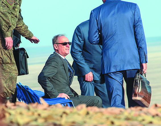 Секретарь Совета безопасности Николай Патрушев (сидит) на полигоне Донгузский во время армейских учений «Центр-2015», сентябрь 2015 года. Фото: Дмитрий Азаров/Коммерсантъ