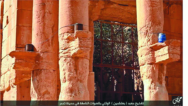 Мины, установленные на колоннах храма Баалшамин, «казнь» древней реликвии исламисты показали всему миру, Пальмира, август 2015 года