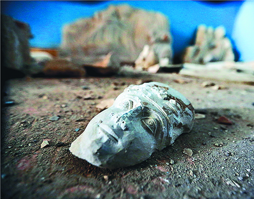 Голова от разрушенной античной статуи. Таких находок в освобожденной Пальмире очень много, 27 марта 2016 года