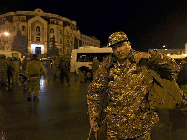 Степанакерт, 4 апреля 2016. Доброволец из "Еркрапа" на центральной площади города. Фото: © SPUTNIK/ АСАТУР ЕСАЯНЦ События выходных поставили под сомнение «замороженный» статус карабахского конфликта — когда в дело идет авиация, можно уже говорить о появлении «горячей точки». Хотя до полномасштабной войны, вроде бы, дело еще не дошло. Все эти терминологические вопросы важнее, чем кажется: все равно достоверной информации о происходящем в Нагорном Карабахе у нас нет.