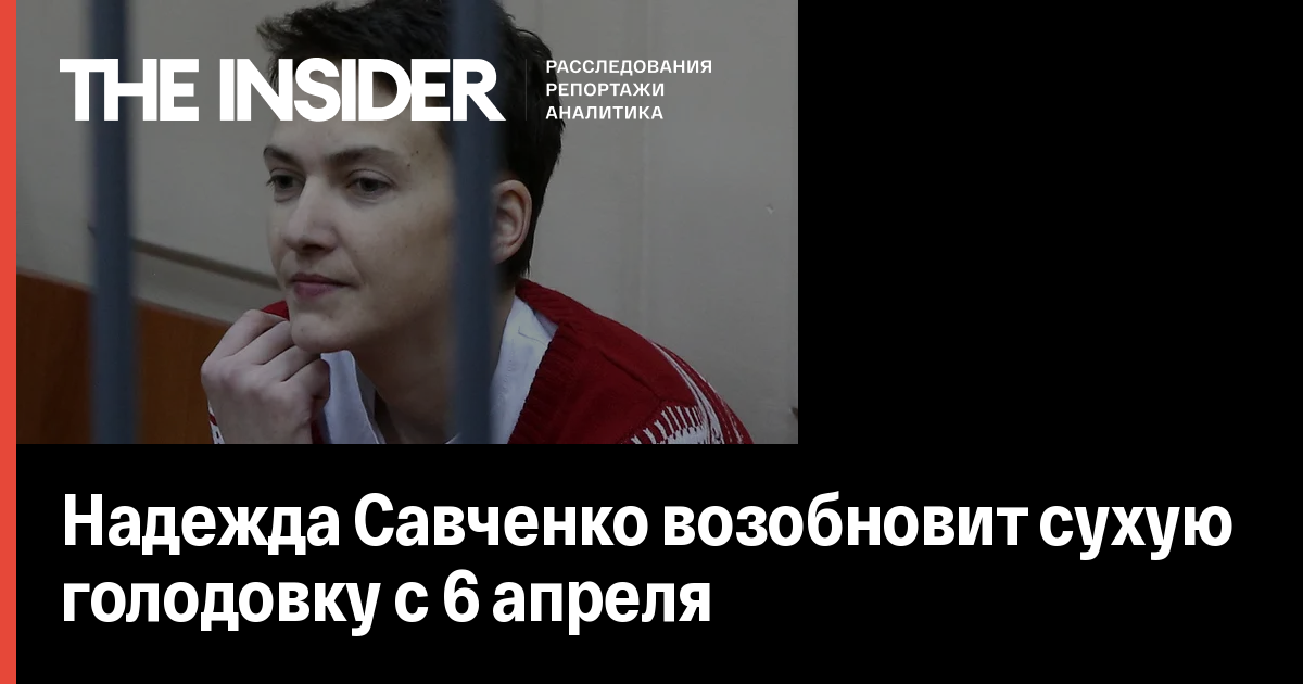 Надежда Савченко возобновит сухую голодовку с 6 апреля