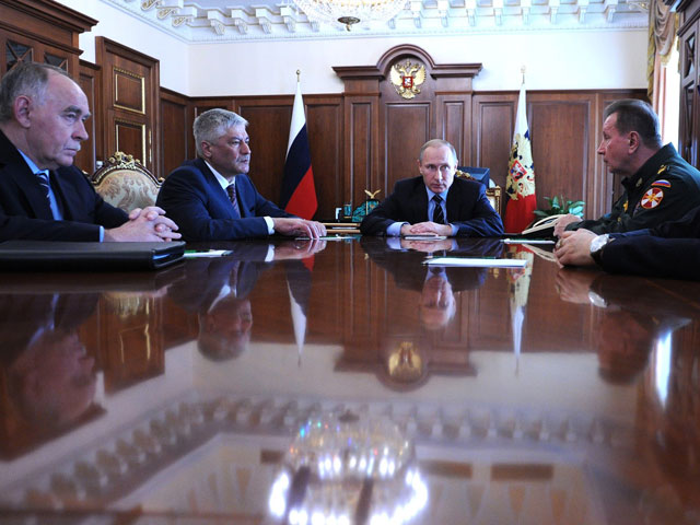Президент РФ Владимир Путин объявил о создании в России на базе внутренних войск МВД нового силового ведомства - Национальной гвардии, которая будет заниматься борьбой с терроризмом, наркотиками, организованной преступностью и выполнять функции спецназа. Об этом он сообщил во вторник, 5 апреля, на встрече с главой Министерства внутренних дел Владимиром Колокольцевым, главой Федеральной службы по контролю за оборотом наркотиков (ФСКН) Виктором Ивановым, замглавы Федеральной миграционной службы (ФМС) Екатериной Егоровой и командующим внутренними войсками МВД Виктором Золотовым, который и занял пост главы нового ведомства.