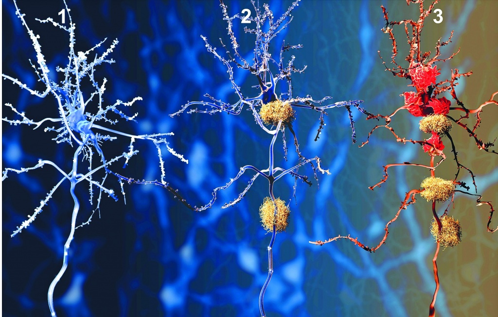 Гигантские скопления бета-амилоида сначала просто мешают нейрону нормально работать, потом, разросшись, убивают. После этого мертвые нейроны съедают клетки-макрофаги из микроглии