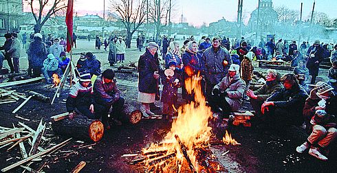 Тревожные дни в Вильнюсе. Горожане у здания литовского парламента 16 января 1991 года