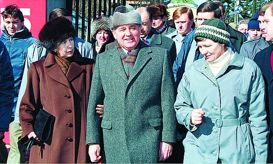 Первый президент СССР Михаил Горбачев идет на избирательный участок в день Всесоюзного референдума о сохранении Союза ССР, 17 марта 1991 года