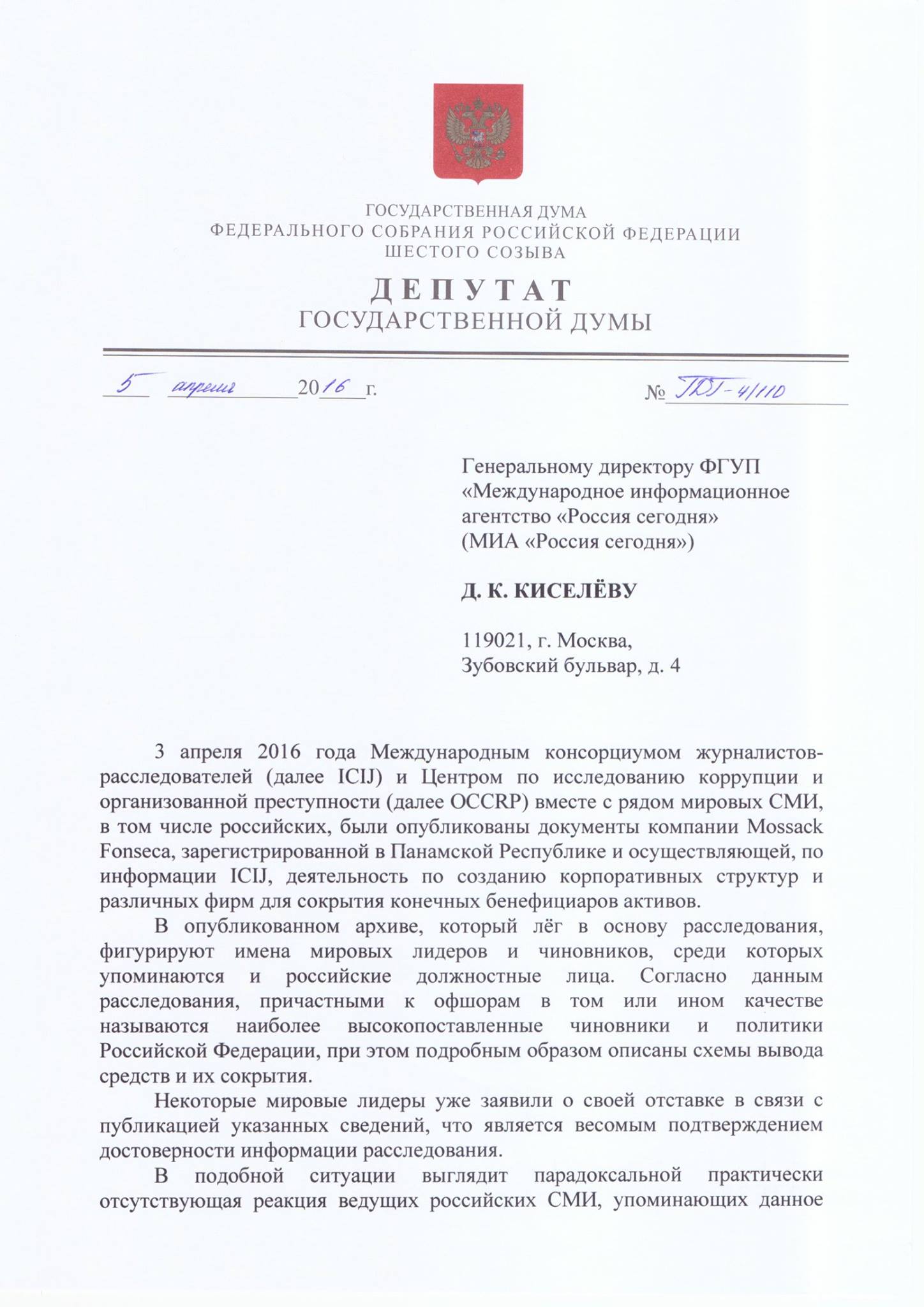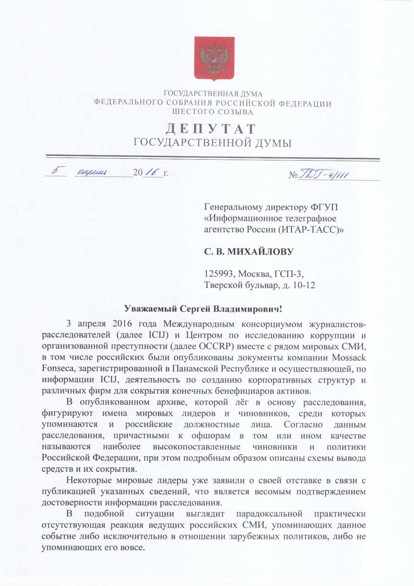 Ответов ожидаем в течение 30 дней: уверен, что за это время «панамский скандал» и не подумает сойти на нет.