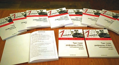 я выступаю сегодня по поручению моих товарищей по «Клубу 1 июля». Я думаю, что большинство в этом зале знает, что это за клуб, но на всякий случай напомню: это неформальное объединение членов Академии, выступивших против реформы РАН 2013 года и заявивших об отказе вступать в новую академию, которую первоначально планировалось создать взамен распускаемой Российской академии наук. О его деятельности можно узнать из брошюры, которая распространялась вчера и сегодня на общем собрании. В Клуб входят люди с очень разными взглядами, но есть в них и общее.