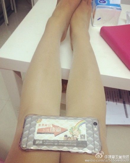 Затем китаянки решили проверить свои колени. По правилам этого флешмоба — идеальные колени помещаются под iPhone 6.