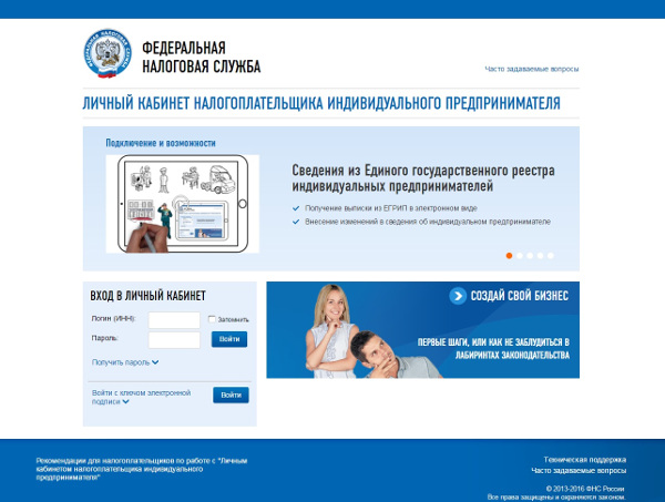 Вход в личный кабинет налогоплательщика на сайте Федеральной налоговой службы ФНС России Наконец еще одно направление реформы — создание для предпринимателей исчерпывающего реестра обязательных требований, которые они должны соблюдать, своего рода чек-лист. Для этого нужно будет проанализировать, какие требования предъявляются сейчас, исключить дублирующие, устаревшие и т. д. В идеале, рассказал Абызов, «при правильном и честном» прохождении самообследования бизнес будет освобожден от плановых проверок.