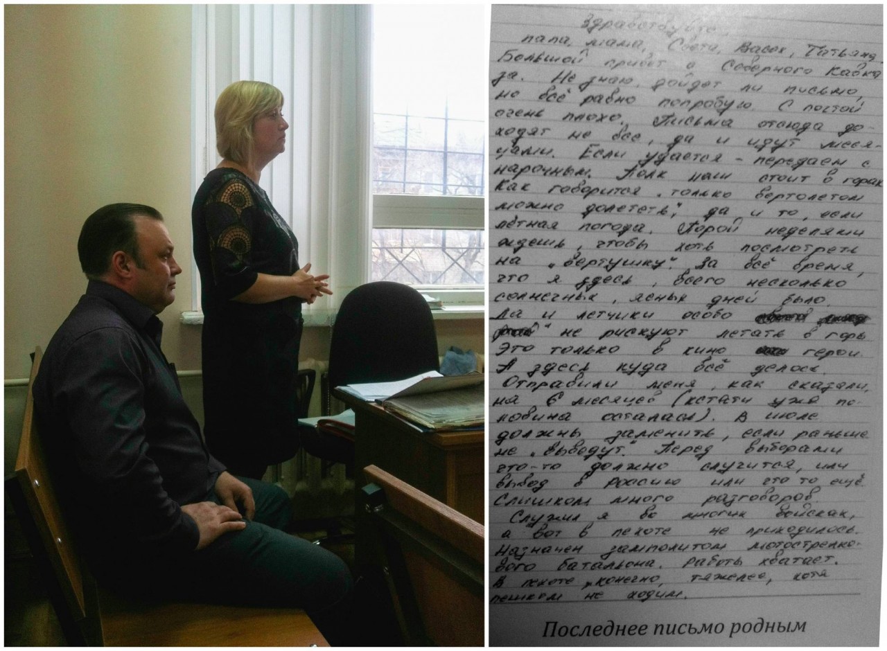 Слева: представители нижегородского военкомата Жерноклеев и Нестеренко. Справа: письмо Сергея Теряева роднымФото: Илья Шепелин — То есть, по вашему мнению, вдовы-военнослужащие после 50 лет должны делать выбор: либо увольняться и получать пенсию по потере кормильца, либо не увольняться и не получать? Но ведь это не относится ко вдовам военнослужащих, которые не служат, а работают в любой другой сфере — они могут продолжать трудиться и получать пенсию по потере кормильца.