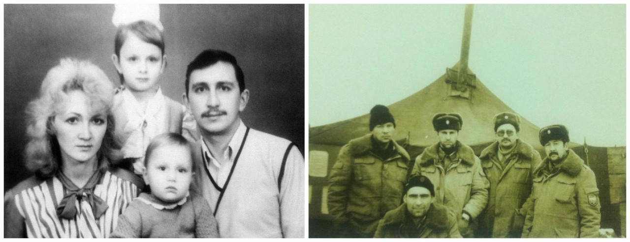 Слева: 1988 год. Сергей с женой Евгенией и дочками Настей и Аней Справа: Чечня, 1996 год. Второй справа — Сергей ТеряевФото: из личного архива