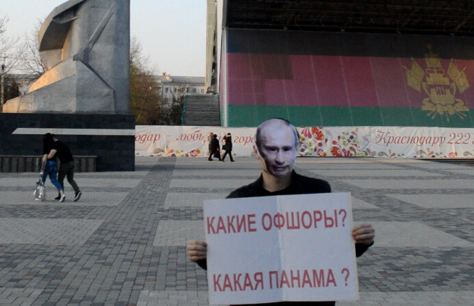 Активисты Краснодарской ячейки ПАРНАС провели серию одиночных пикетов на главной улице краевой столицы, в ходе которых были заданы вопросы президенту РФ Путину о его причастности к обнаруженным у его друзей многомиллиардным долларовым счетам, хранящимся в офшорных банках в Панаме.
