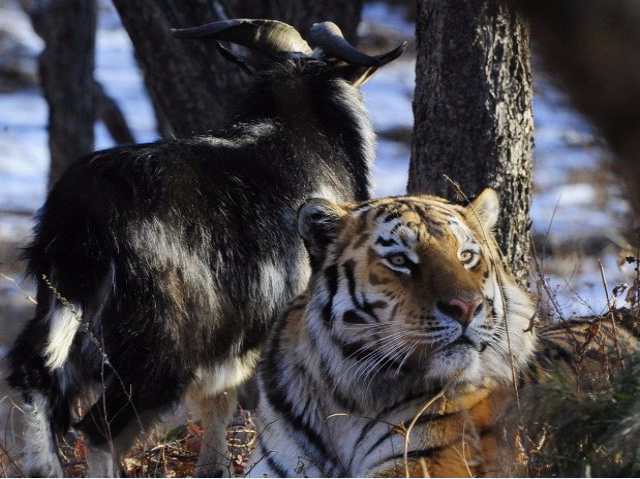 Напомним, тигр Амур подружился с козлом Тимуром, которого ему прислали в качестве добычи в ноябре.
