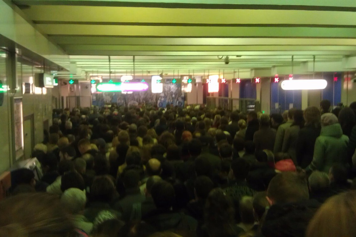 На станции метро «Комендантский проспект» второй день подряд появляются гигантские очереди на вход,