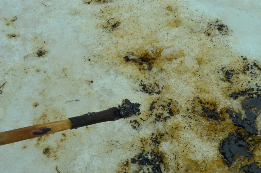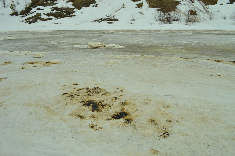 Автор поста сообщил о том, что рыбаки пробурили лунки во льду водоема, и на поверхности появилась вязкая жидкость темного цвета, по консистенции напоминающая нефть. Пятна нефти обнаружились и на льду водоема, ниже по течению находится водозабор Ухты.
