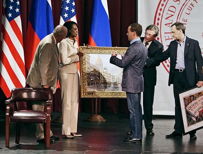 — Я стараюсь быть дипломатичным. Если раскрыть все карты: я неформальный советник Клинтон — она ведь тоже мой бывший босс. Выступала недавно в Стэнфорде же. И я довольно хорошо чувствую ее позицию относительно России. Кстати, когда она выступала, я упомянул нашу последнюю поездку с ней во Владивосток, и она ответила под всеобщий смех: «Что происходит во Владивостоке, остается во Владивостоке».