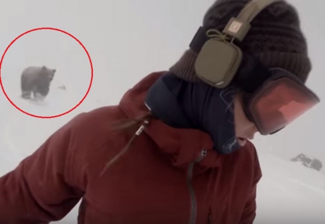 Сноубордистка в наушниках не слышала, что за ней гонится медведь