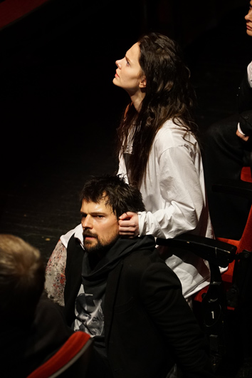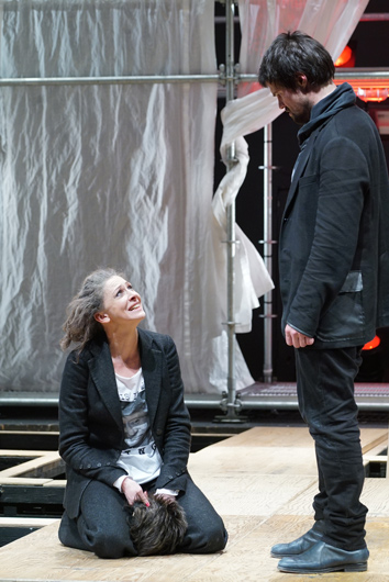 Вот тут наверняка найдутся те, кто спросит: а зачем, собственно, Додину в таком случае понадобился Шекспир? Написал бы свою пьесу про тот мир, который столь бесчеловечен. Вопросы эти, что в последнее время нередко задаются российским режиссерам чиновниками, а то и критиками «нового формата», чрезвычайно забавны. И ведь бесполезно надеяться, что вопрошающие когда-нибудь уяснят, что линия драматического натяжения в данном случае проходит прежде всего между Додиным и тем гуманистическим мифом, венцом которого много столетий остается Шекспир. Шекспир нужен Додину затем же, зачем нужны Хайнеру Мюллеру Гамлет или Медея. И не случайно в письме принца Офелии, озвученном Полонием, появляется словосочетание «машина Гамлет». Гамлет Додина не подписался бы под словами мюллеровского героя: «Мысли — это язвы в моем мозгу. Мой мозг — сплошной шрам. Хочу быть машиной. Руками хватать ногами ходить не ведать боли не мыслить». Гамлет Додина, как и Гертруда, — это уже машины, чьи действия предсказуемы, как предсказуемы действия любого известного механизма, среди которых государственная власть — один из самых отлаженных. Так что, когда Гертруда и Клавдий, не сговариваясь, бросятся за несчастной безумицей Офелией, чей рассудок не выдержал первой же смерти, а потом с высоты из-за белых занавесок в подвал полетит мягкая кукла, это могло бы выглядеть удивительно в исполнении шекспировских, но не додинских персонажей. А в парадигме Додина звездные артисты МДТ Ксения Раппопорт и Данила Козловский, лишенные в «Гамлете» харизмы и обаяния, которыми полны их экранные герои, — невероятно действенный режиссерский ход.