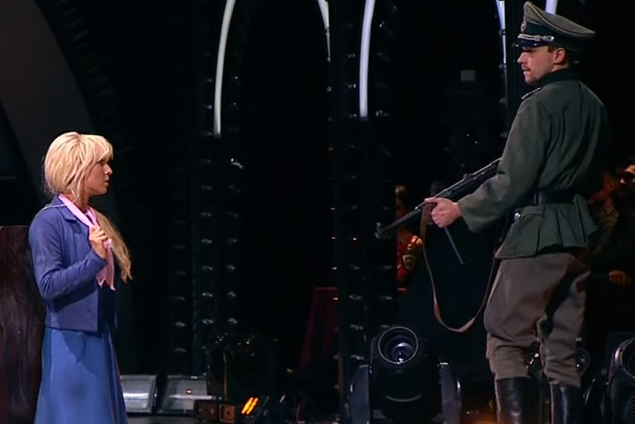 Создатели программы «Танцы со звездами» выразили сожаление, что номер, в котором артист танцует в нацистской форме, «вызвал противоречивые эмоции у зрителей». Создатели пояснили, что придумавший номер артист Александр Петров хотел рассказать о «трагической обреченной любви русской девушки и немца, любви, которая заставляет его бросить оружие и погибнуть с ней».Выпуск «Танцев со звездами» с номером Александра Петрова вышел в эфир 10 апреля. Депутат Госдумы Роман Худяков обвинил авторов программы в неуважении к ветеранам: «В преддверии 9 мая, в преддверии такого праздника для нашего государства, да ещё и в День космонавтики выступать в фашистской форме, да ещё и со свастикой – это уже никаким комментариям не поддаётся».