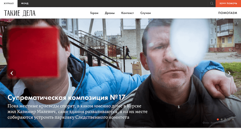 «Такие дела» – информационный портал благотворительного фонда «Нужна помощь». Это первый успешный проект в Рунете, совмещающий благотворительную организацию и новостное издание. Каждый репортаж или журналистское расследование на этом сайте сопровождается кампанией по сбору денег на решение конкретной проблемы.