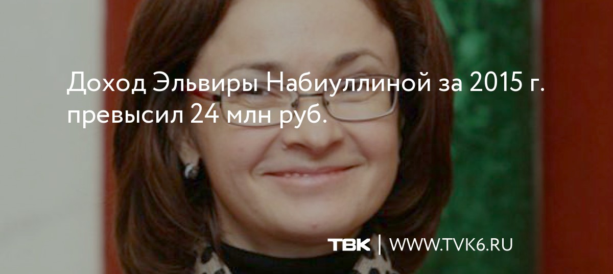 Доход Эльвиры Набиуллиной за 2015 г. превысил 24 млн руб.