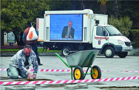 Жители Крыма наблюдают за выступлением президента, Ялта, 14 апреля 2016 года. Фото: Виктор Коротаев/Коммерсантъ
