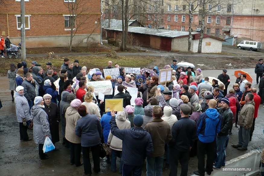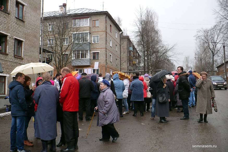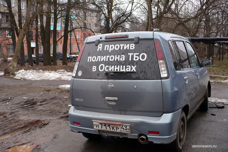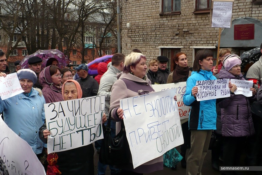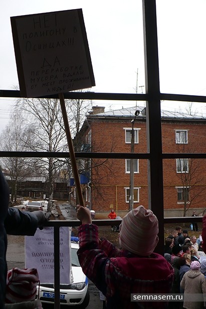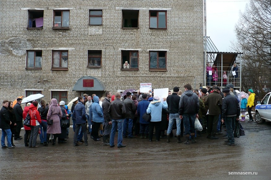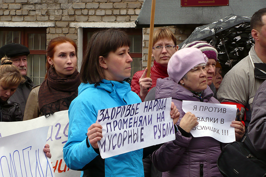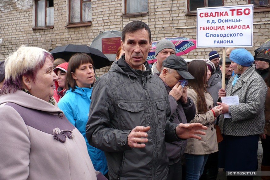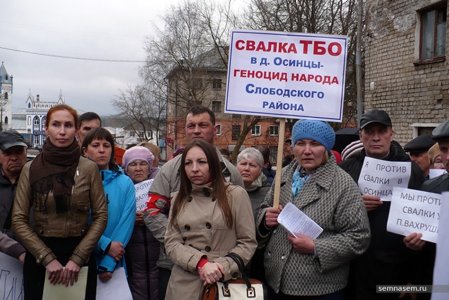 Жители Вахрушей и соседних деревень собрались у здания управляющей компании. Люди держали в руках плакаты с надписями: «Будущее детей в наших руках. Нет ТБО рядом с Вахрушами!», «Свалка ТБО в д.Осинцы — геноцид народа Слободского района», «Мы против свалки!»
