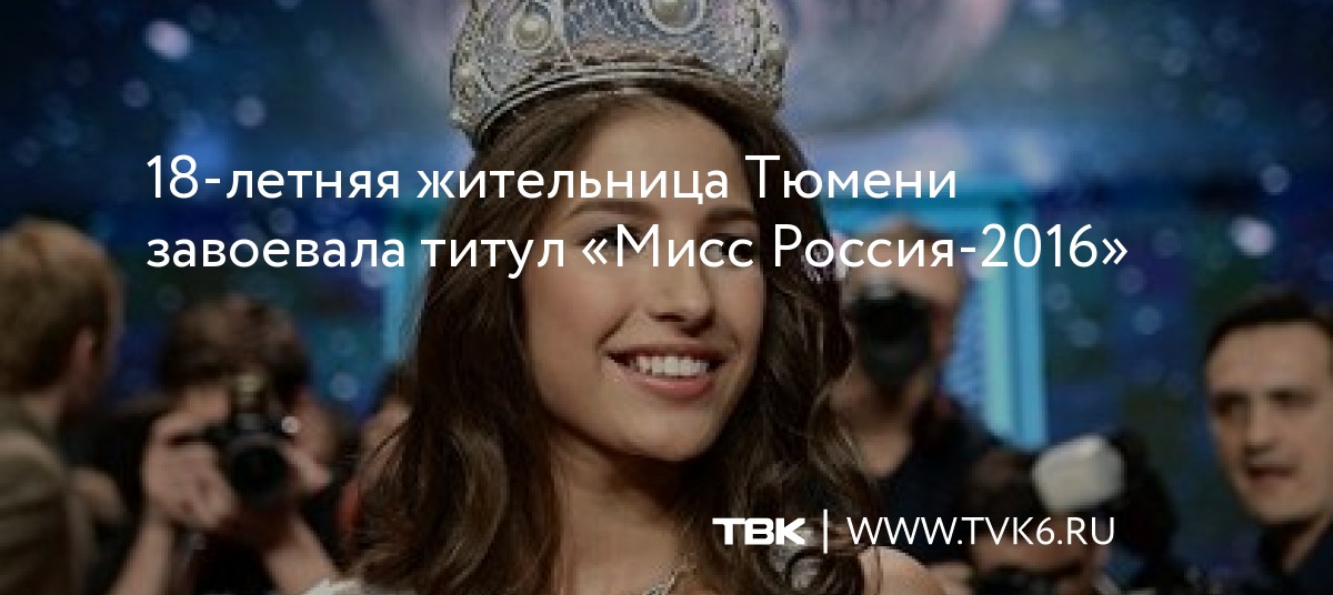 Представительница Тюмени Яна Добровольская одержала победу в национальном конкурсе «Мисс Россия-2016», сообщает газета «Коммерсант».