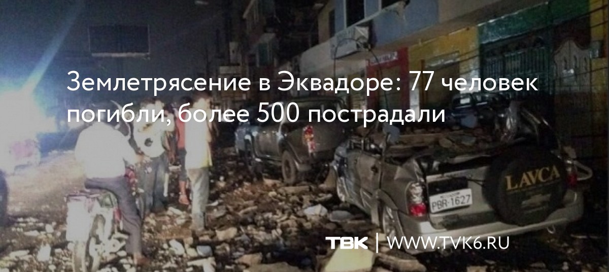 Землетрясение в Эквадоре: 77 человек погибли, более 500 пострадали