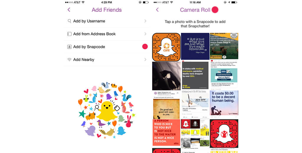 Для того чтобы добавить в друзья эти НКО в Snapchat, нужно сделать скриншот Snapcode и добавить его в приложение.