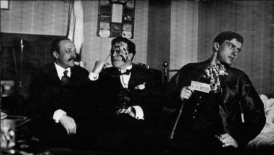 © Государственный музей В.В. Маяковского, Москва Андрей Шемшурин, Давид Бурлюк, Владимир Маяковский. 1914 г., Москва «Пусть улицы будут праздником искусства для всех» — все это очень созвучно с октябрьскими событиями 1917-го, с эпохой реформирования тогда еще царской России. На такой благодатной почве повсеместного свержения и отрицания существующего строя, без сомнения, можно сказать, что русские футуристы задавали тон актуальному искусству новой, социалистической России, основанной, прежде всего, на правовом равенстве и устранении элитарности.