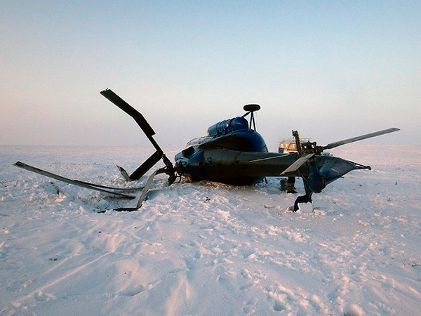 Вертолет в тундре. Фото: ГУ МЧС РФ по ЯНАО Экспедиция вылетела на трех легких вертолетах из Москвы 18 апреля. При перелете из поселка Амдерма в Ненецком округе на остров Белый Ямало-Ненецкого округа ухудшились погодные метеоусловия. Один вертолет ушел на разведку местности, в дальнейшем связь с ним была утеряна.