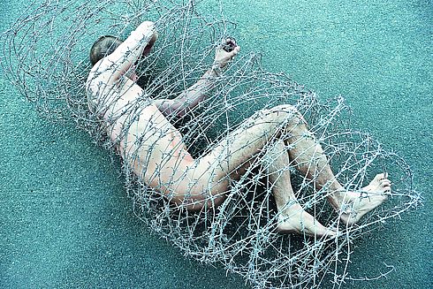 Петру Павленскому, который и ныне в тюрьме, не привыкать к колючей проволоке, во время акции «Туша» в Петербурге в мае 2013 года. Фото: Сергей Ермохин/ИТАР-ТАСС