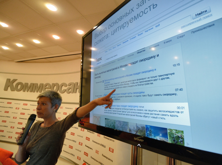 Руководитель «Яндекс.Новости» Татьяна Исаева на пресс-конференции в ИД «Коммерсантъ».