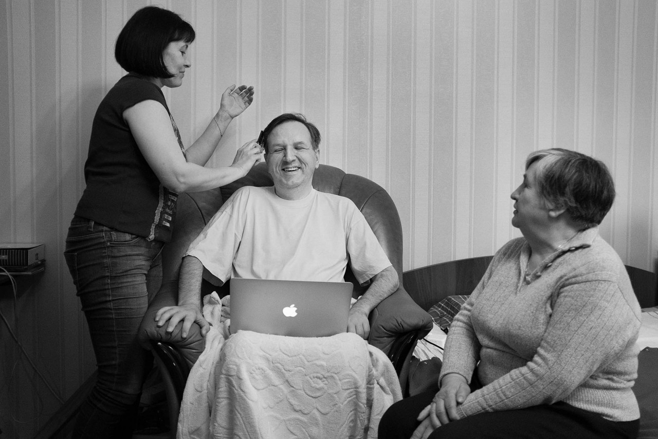 Я живу с мамой, двумя детьми и сиделкой, которую оплачивает православная служба «Милосердие». Жена ушла от меня полтора года назад. Господь дает человеку испытания по его силам. Одни несут их, другие нет. Бог им судья. Мои дети остались жить со мной. Сыну шесть, я учу его играть в шахматы, готовлю к школе. Дочь уже взрослая, в сентябре поедет на год на стажировку в Китай. Она сомневалась, ехать или нет, не хотела оставлять меня. Но мы все сказали ей, что ехать нужно обязательно. Я очень радуюсь успехам детей. Вот вчера меня сын в шахматы обыграл.